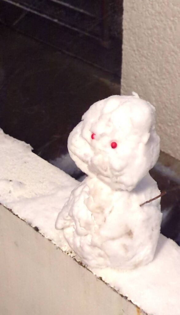 昨日降った雪で小ぶりな雪だるまを作りました😆