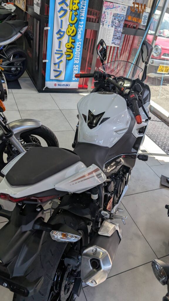 あまり見かけないホワイトカラーで目を引くこと間違いなし🏍️💨